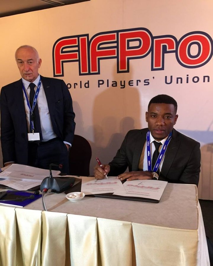 Le président de l’ANFPG paraphant le contrat avec la FIFPro