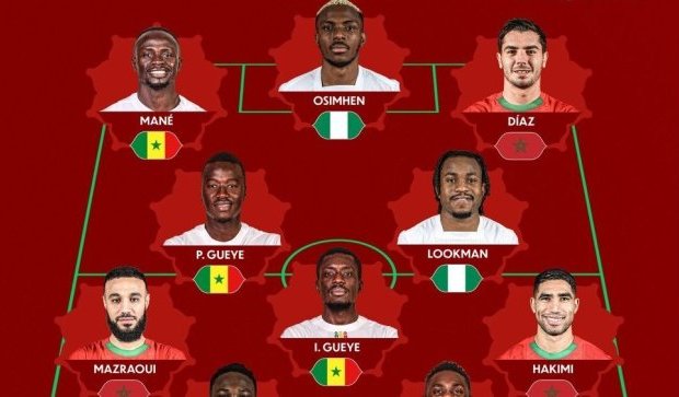 - Défenseurs : Achraf Hakimi (Maroc), Moussa Niakhaté (Sénégal), Calvin Bassey (Nigeria), Noussair Mazraoui (Maroc).